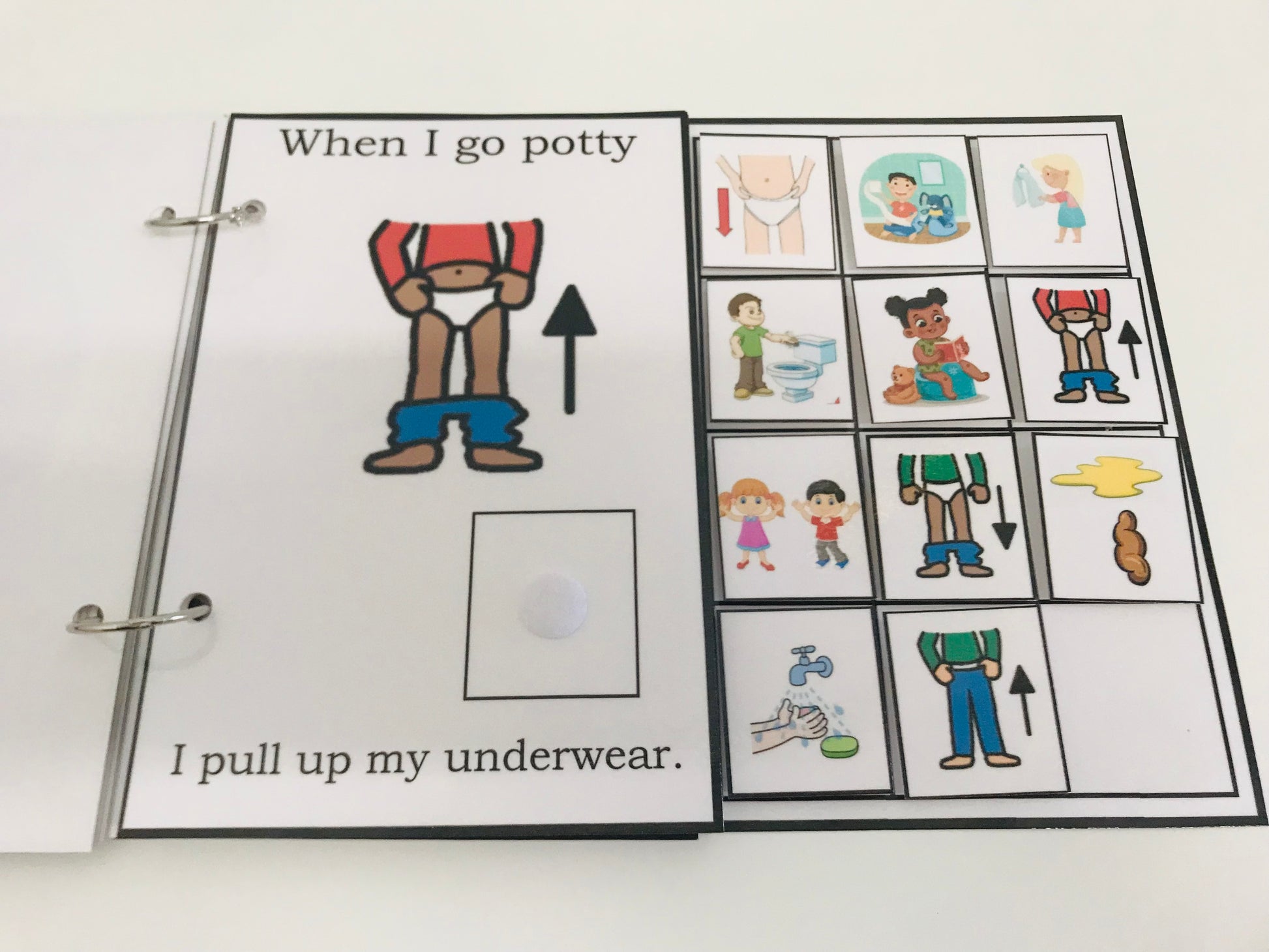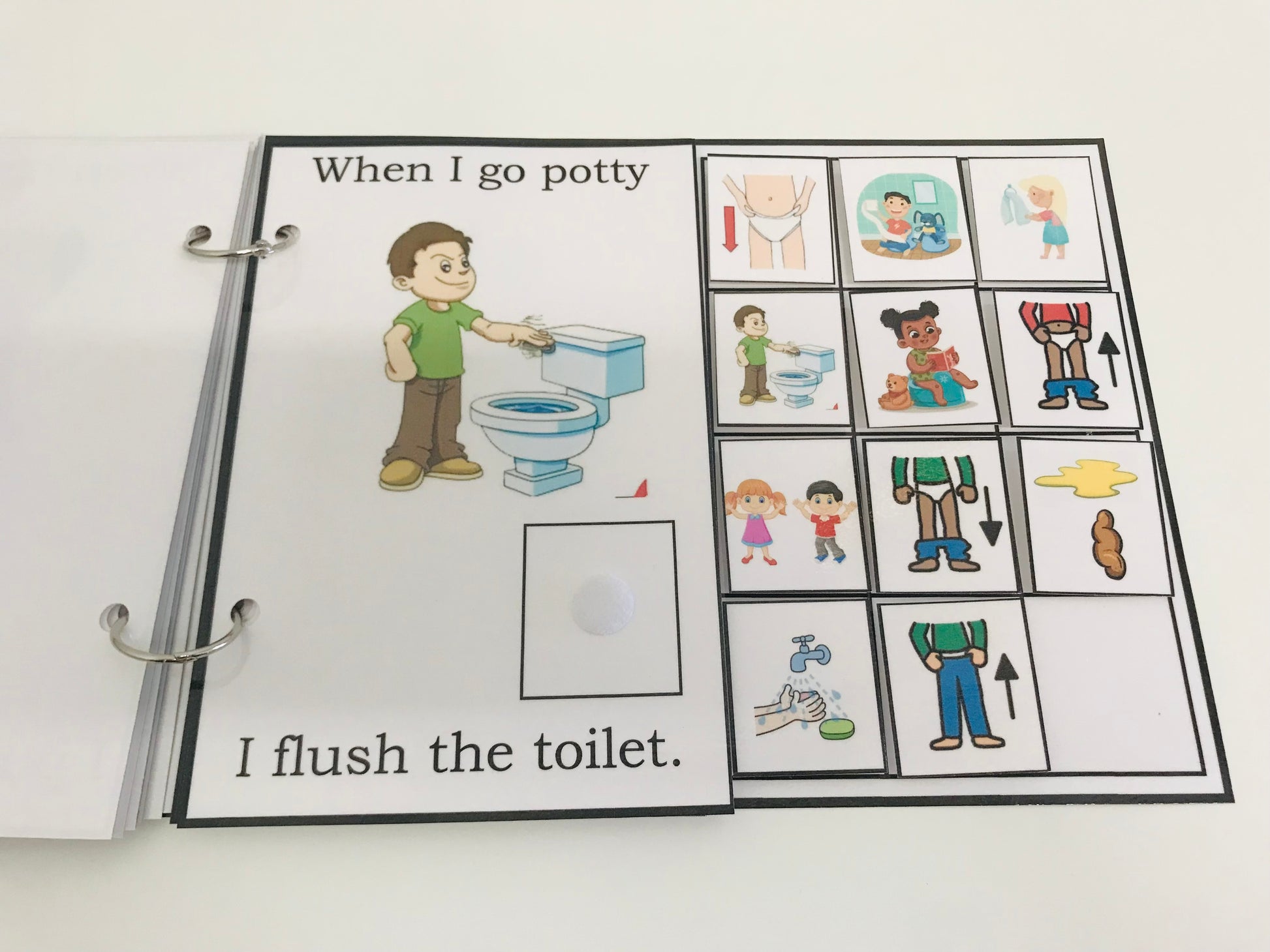 Help your child understand the process of going potty independently. Whether you are just starting out with potty training or you are trying to reinforce the skills you’ve been working on for a long time, this interactive book may help. The book comes laminated and fully assembled. The pieces connect with Velcro dots and are bound with metal rings.