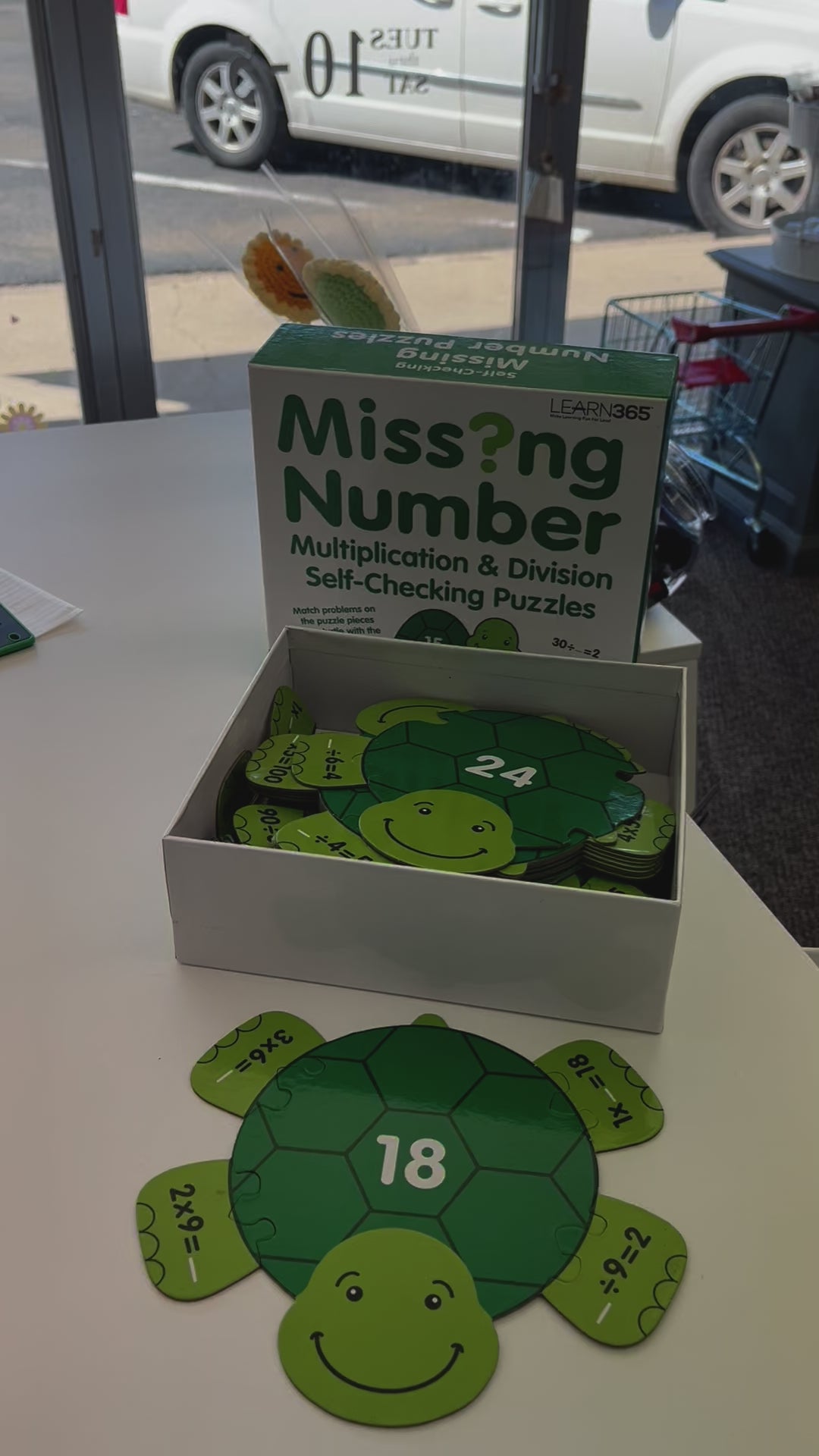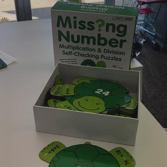 If your child is working on multiplication and division, then these puzzles may be a great activity for them. It comes with 25 turtles and each turtle has four equations that snap in as feet. This is a huge set offering lots of practice for your child. I love how the game is differentiated. Each foot has a different part of the equation missing and for each turtle you’re practicing multiplication and division facts. This has 125 pieces total.