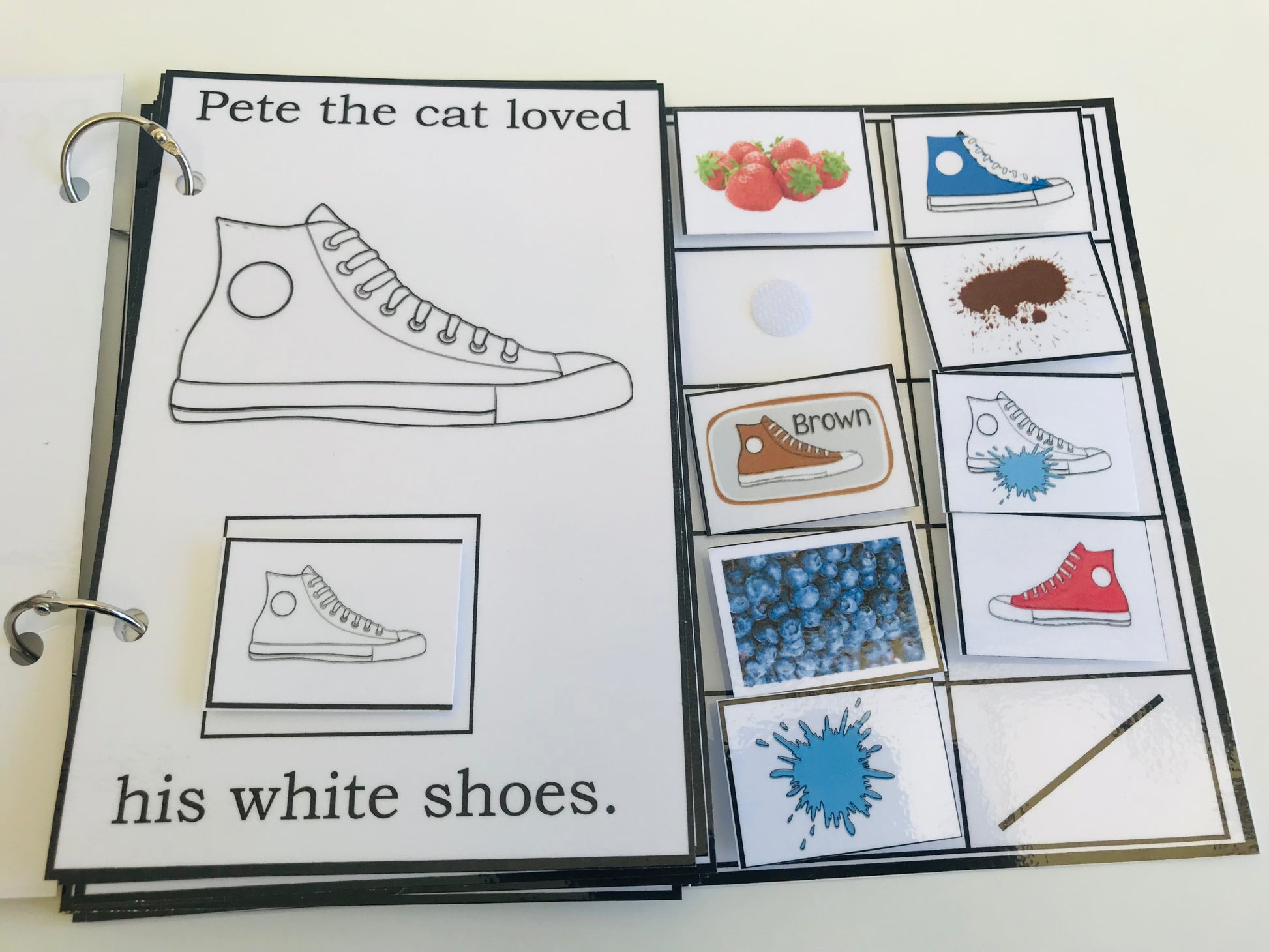 Pete the Cat is a loved character for many children. This interactive book lets your child practice retelling the story of Pete the Cat’s White Shoes while reading familiar repetitive text. Comes laminated and fully assembled. All pieces connect with Velcro dots.