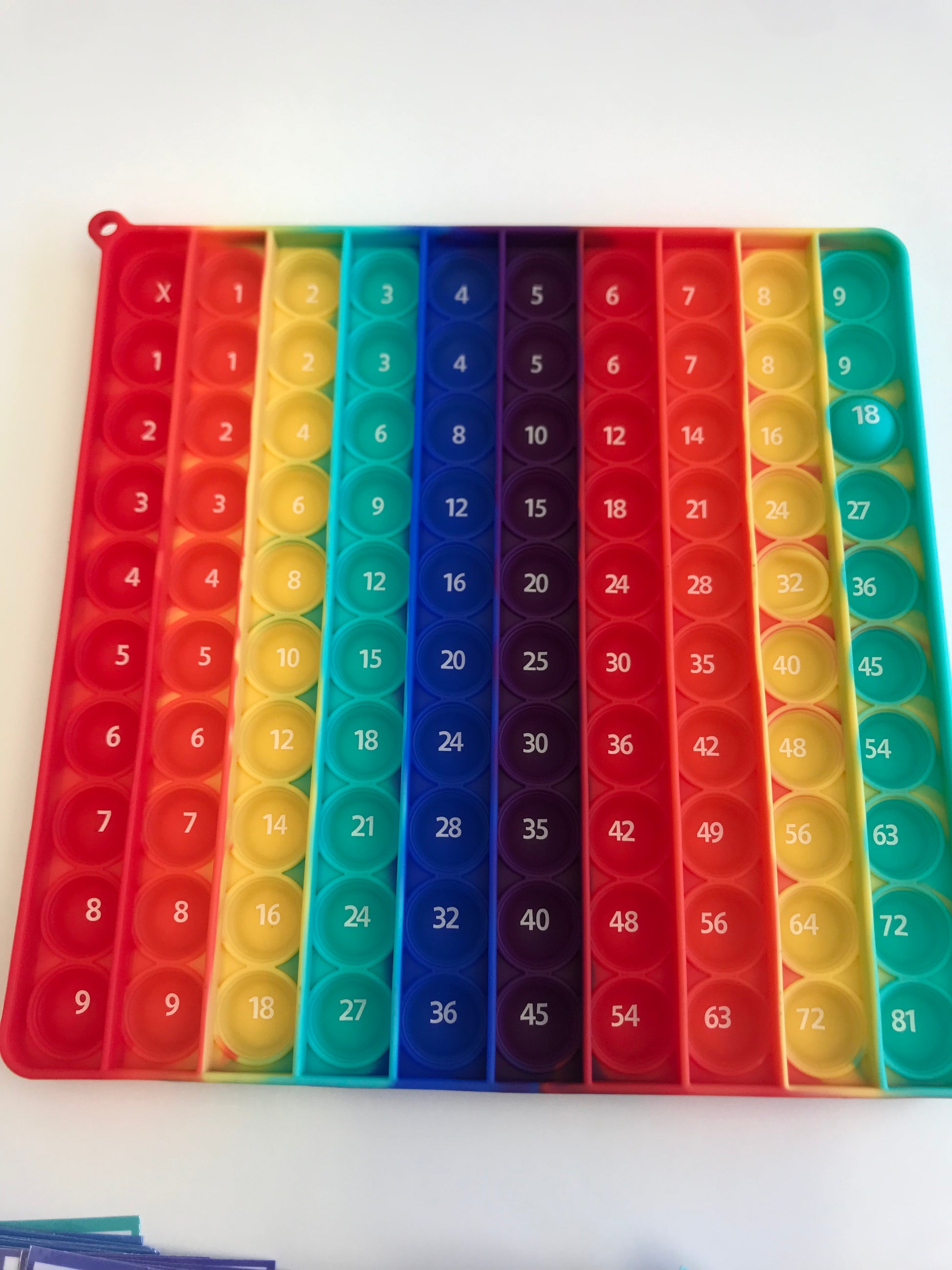 Put those beloved poppers to work! This activity includes a popper that has the numbers one through 100 on the front and multiplication facts up to 9×9 on the back. The cards included are the numbers 1-100. Your child will draw a card and pop the number they drew. Work on just a few specific numbers, or have them move through as many numbers as possible. Cards are color corded to give a little extra support. All cards are laminated.